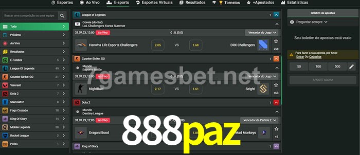 O 888paz oferece uma grande seleção de opções de apostas em e-sports com probabilidades competitivas